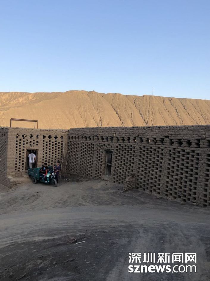 ??? ?在葡萄溝,隨處都可見到土磚砌成的鏤空方格子土屋,構(gòu)成了當?shù)匾坏廓毺氐娘L(fēng)景,原來這是專門用來晾葡萄干的場地。 趙春麗攝