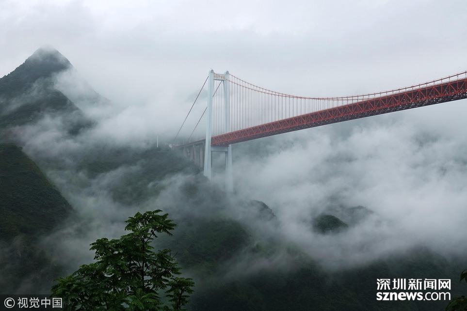 ???深圳新聞網(wǎng)訊 2018年6月26日,一場(chǎng)大雨后貴州省安順市關(guān)嶺縣壩陵河大峽谷云霧繚繞,橫跨兩岸的壩陵河大橋在云霧中時(shí)隱時(shí)現(xiàn),更顯雄偉壯觀。