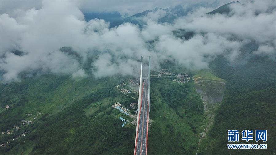 8月9日無(wú)人機(jī)航拍的北盤江大橋。
