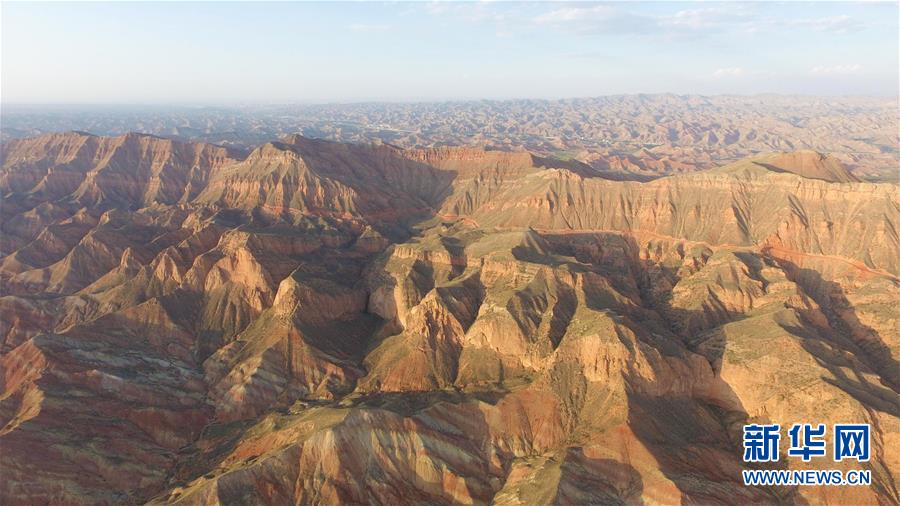 這是7月15日拍攝的蘭州樹屏丹霞地貌。蘭州樹屏丹霞國家地質(zhì)公園位于甘肅省蘭州市永登縣咸水河流域及其毗鄰地區(qū),分布在蘭州市所屬的永登縣、皋蘭縣、西固區(qū)、安寧區(qū),主體位于永登縣樹屏鎮(zhèn)、苦水鎮(zhèn)和西固區(qū)河口鎮(zhèn)。其主體地質(zhì)遺跡為丹霞和彩色丘陵,登高遠(yuǎn)眺,綿延起伏,絢爛瑰麗,如同大自然創(chuàng)作的壯美油畫。新華社記者陳曄華 攝