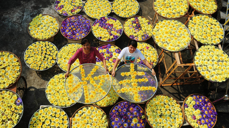當(dāng)?shù)貢r(shí)間2018年9月18日,印尼加里曼丹克塔邦,國(guó)際動(dòng)物救援(IAR)猩猩安全與保護(hù)中心里,飼養(yǎng)員用獨(dú)輪車把猩猩寶寶送到森林學(xué)校。圖片作者:Newscom