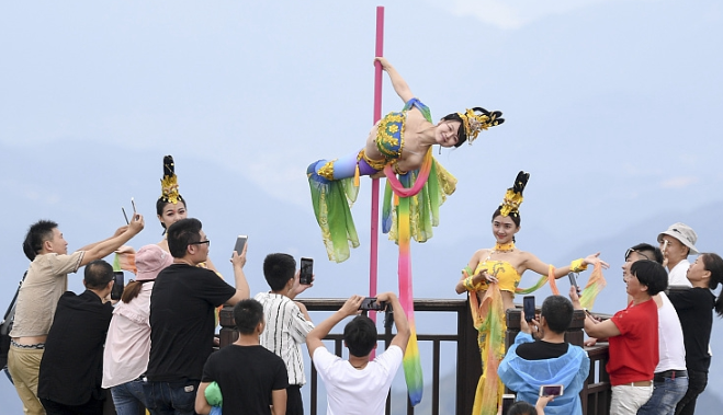 長三角第一高峰上演高空鋼管舞 舞者 ...