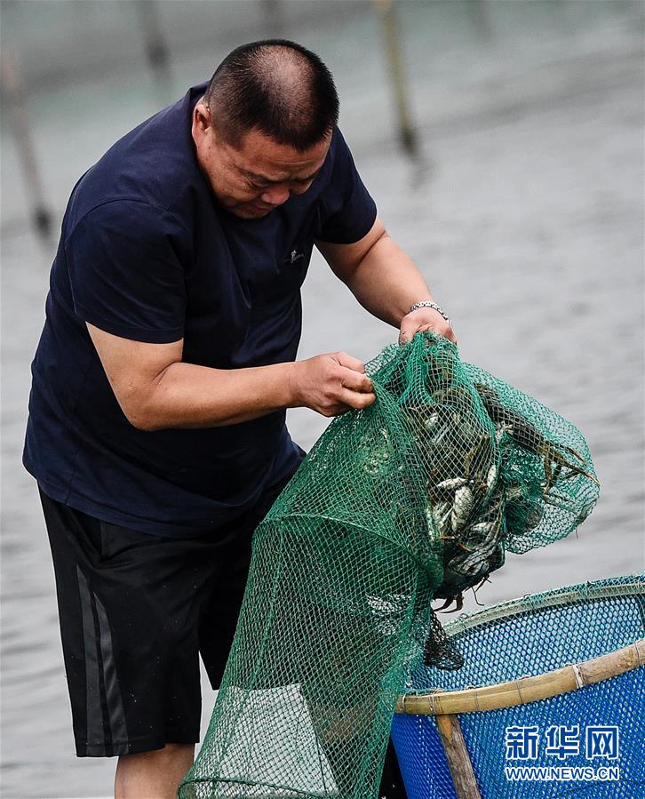 9月21日,蟹農(nóng)展示剛捕撈到的陽澄湖大閘蟹。新華社記者李響攝