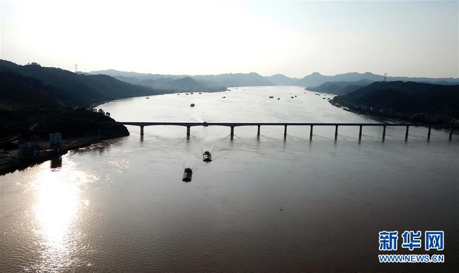 這是船舶從西江黃金水道潯江廣西梧州段通過(guò)(9月21日攝,無(wú)人機(jī)航拍)。 新華社記者 周華 攝