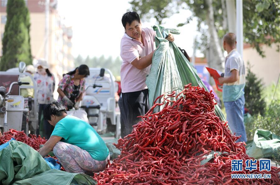 9月16日,阜城縣王集鄉(xiāng)南張莊村農(nóng)民在搬運(yùn)采摘的辣椒。近年來,河北省阜城縣王集鄉(xiāng)在推進(jìn)產(chǎn)業(yè)富民過程中,積極引導(dǎo)農(nóng)民調(diào)整農(nóng)業(yè)產(chǎn)業(yè)結(jié)構(gòu),按照品種特色化、種植規(guī)?;?、產(chǎn)銷一體化的“公司+基地+農(nóng)戶”的經(jīng)營(yíng)模式,鼓勵(lì)農(nóng)民發(fā)展特色辣椒種植,推行“訂單種植”模式,開辟出了一條農(nóng)民創(chuàng)收新路徑。目前,阜城縣王集鄉(xiāng)辣椒種植面積3100余畝,每畝年收益2500元以上,帶動(dòng)當(dāng)?shù)剞r(nóng)民實(shí)現(xiàn)增收。新華社記者朱旭東攝