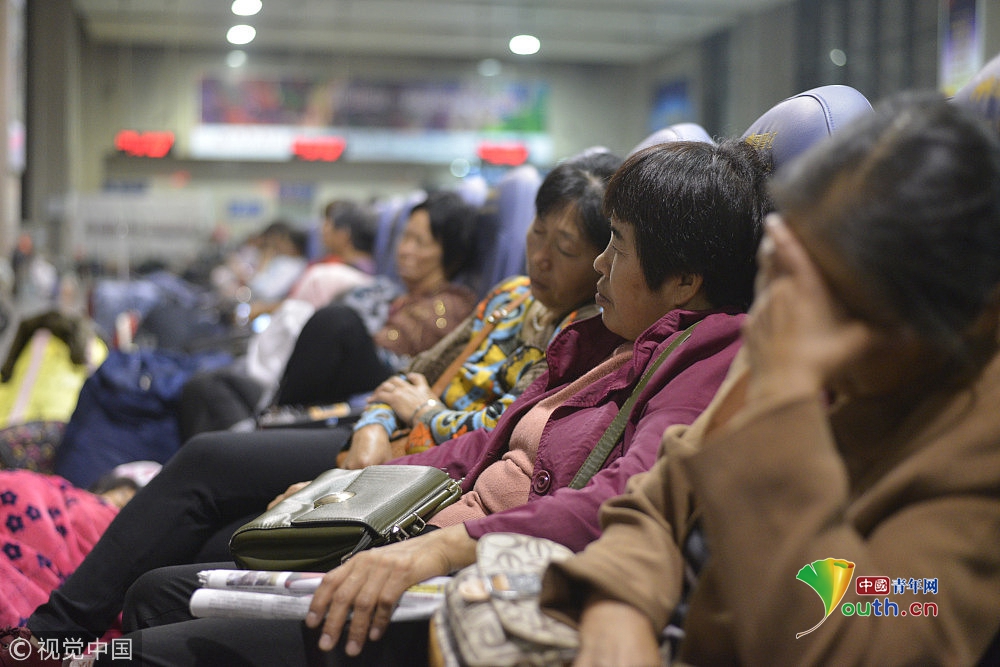2018年9月15日,在鄭州火車站候車大廳,來自周口西華縣農(nóng)村的數(shù)百名采棉工,為趕早上4點(diǎn)50分的火車,在火車室打地鋪休息。
