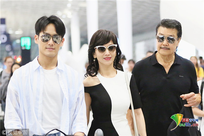 2018年9月25日晚,深圳,剛參加完央視秋晚的趙雅芝攜老公黃錦燊及兒子黃愷杰抵達(dá)深圳寶安機(jī)場(chǎng),超高顏值的一家人所致之處頻頻引起側(cè)目,其子黃愷杰自推行李車,俊朗的外形引起粉絲一路跟拍,相當(dāng)拉風(fēng)!