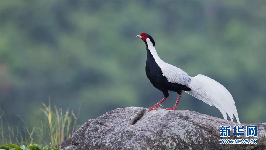 9月26日,在南靖縣鵝仙洞自然保護區(qū)內(nèi),一只白鷴在山石上停留。 新華社記者 梅永存 攝