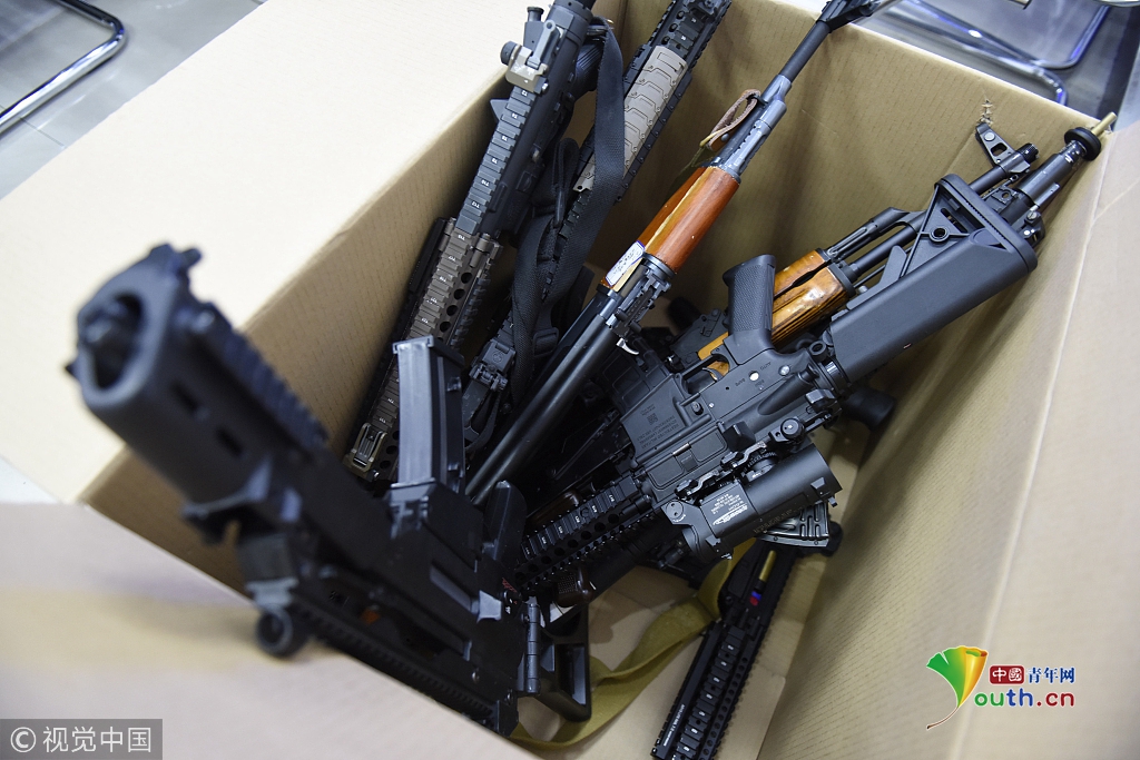 9月20日,在河北省邯鄲市天鴻廣場(chǎng),警方展示即將銷毀的非法槍支。 新華社記者 王曉 攝