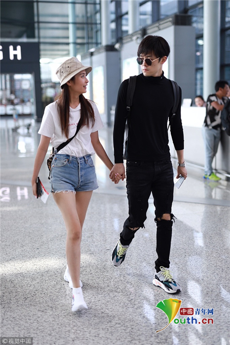 2018年9月26日,上海,穎兒、付辛博夫婦亮相機(jī)場(chǎng)。穎兒身穿白T恤和牛仔短褲露出纖細(xì)美腿十分養(yǎng)眼,一路挽著老公的手十分恩愛(ài)甜蜜,日前,穎兒還在節(jié)目上痛哭述說(shuō)自己與付辛博新婚相處的苦楚。