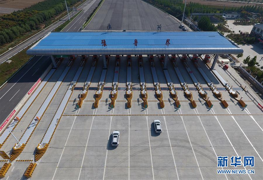 9月28日,車輛通過河南省南樂縣的南(樂)林(州)高速豫魯界收費(fèi)站。新華社記者 馮大鵬 攝
