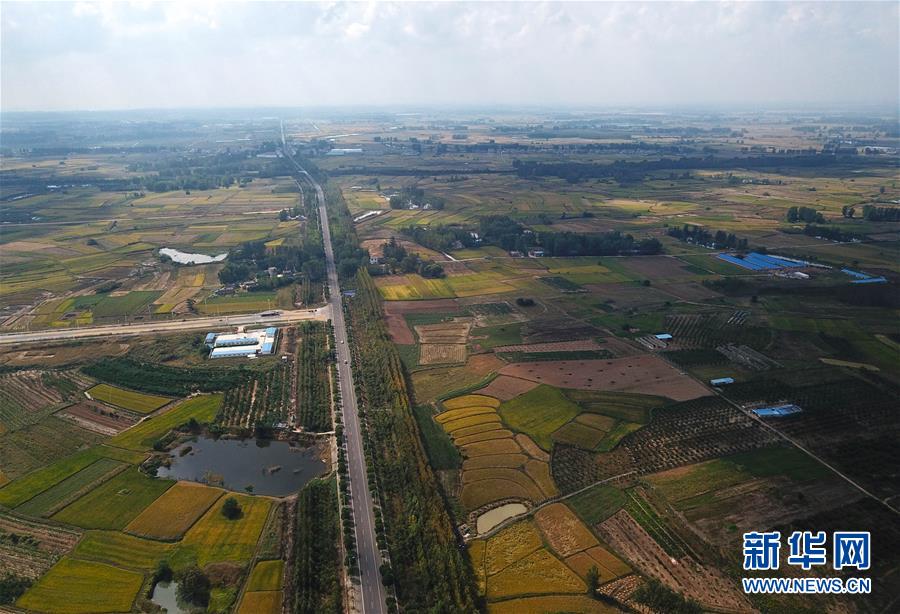這是9月28日無人機拍攝的小崗村稻田。新華社記者 才揚攝