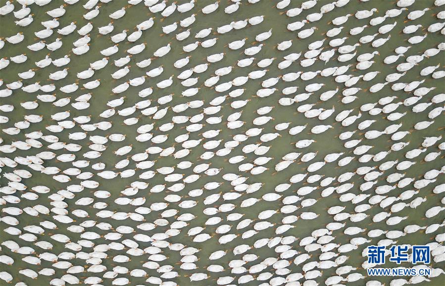 這是小崗村一處養(yǎng)殖鴨子的水塘(9月16日無人機拍攝)。 新華社記者 才揚攝