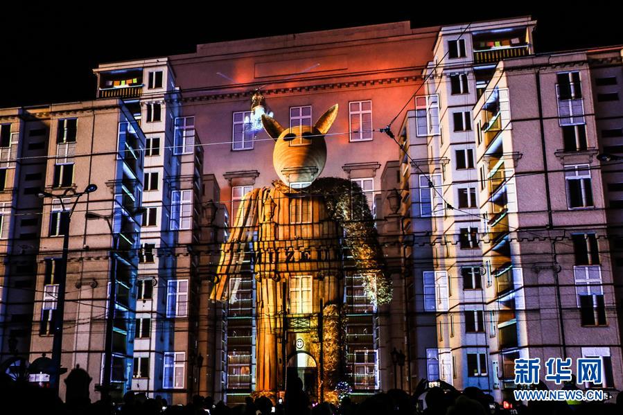 這是9月28日在波蘭羅茲市中心拍攝的2018“舞動”燈光節(jié)現(xiàn)場。2018“舞動”燈光節(jié)于9月28日至30日在波蘭中部交通樞紐城市——羅茲市舉行,各式各樣的光影表演在這座城市的各個角落同時上演,組成了一場如夢如幻的大型燈光秀。新華社記者陳序攝