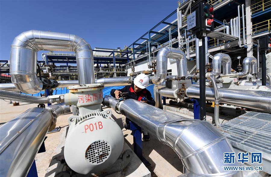 延安煤油氣資源綜合利用項目甲醇制烯烴中心的工作人員在進行設備巡檢(9月28日攝)。新華社記者劉瀟攝