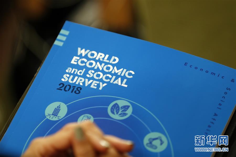 這是10月8日在位于紐約的聯(lián)合國總部拍攝的《2018年世界經(jīng)濟和社會概覽》。