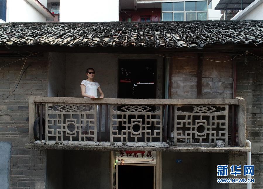 9月26日早晨,楊虹在自家陽臺練習(xí)發(fā)聲(無人機拍攝)。
