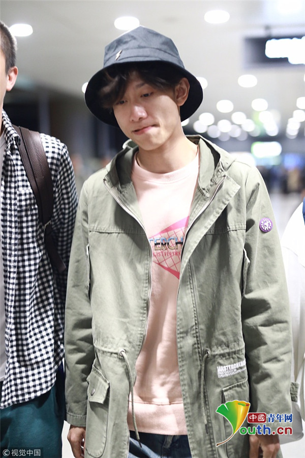 2018年10月14日,上海,張一山抵達(dá)上海機(jī)場。張一山戴漁夫帽眼袋嚴(yán)重瞬間老十歲, 用手擋臉?biāo)撇辉干乡R。