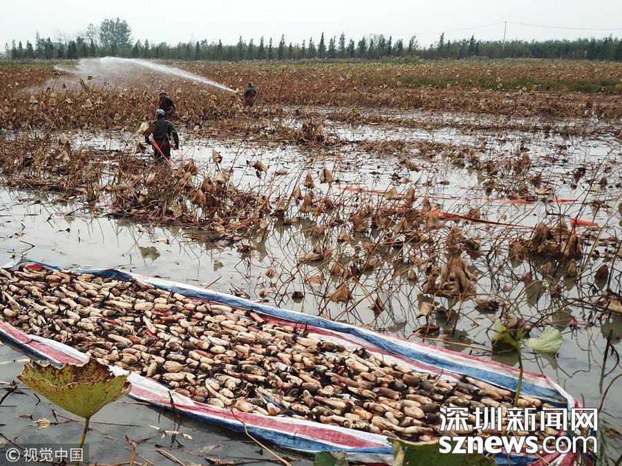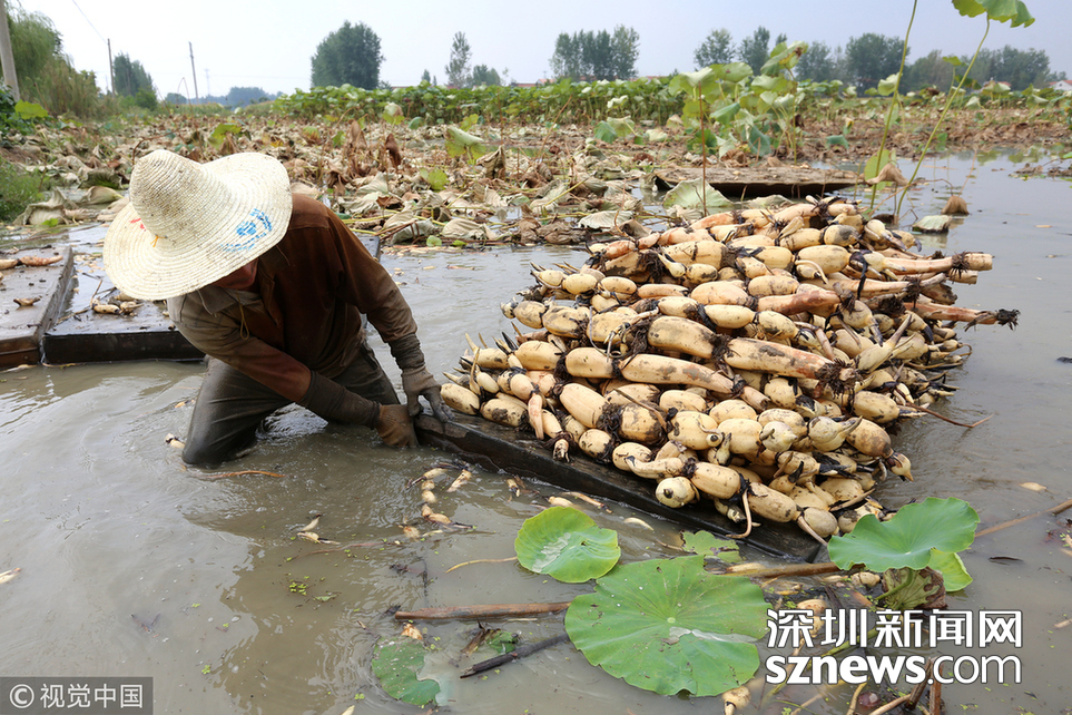 藕農(nóng)泥中“掘金” 初秋時節(jié)采藕忙