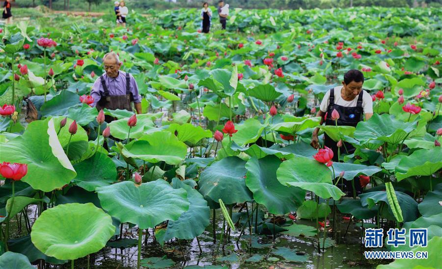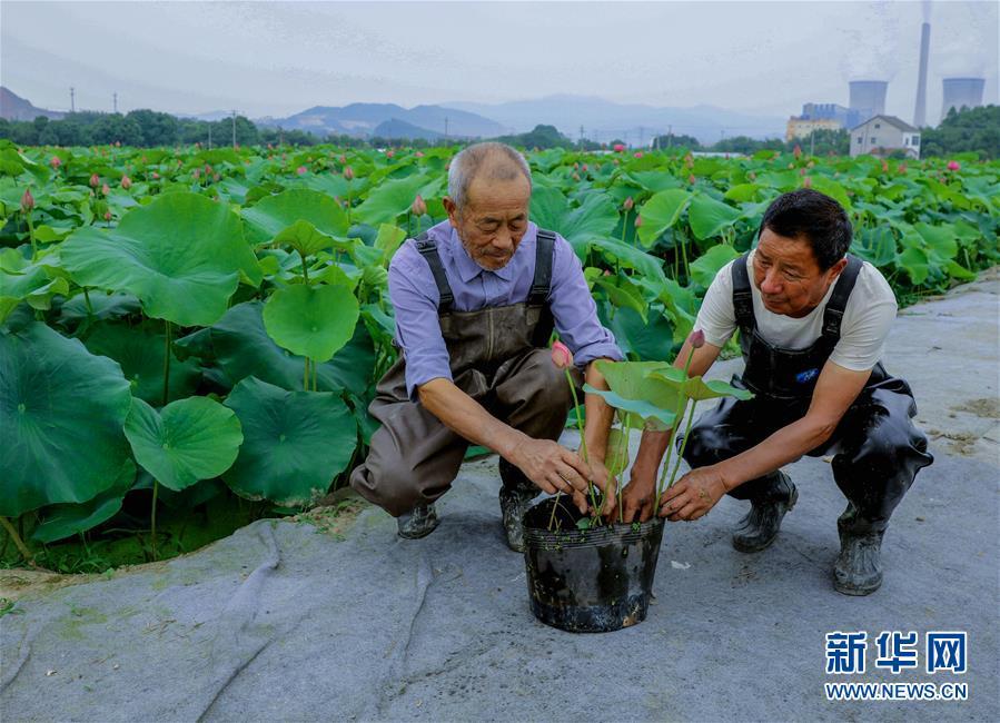 6月3日,荷農(nóng)們將觀賞性荷花裝盆準(zhǔn)備銷售。 進入初夏時節(jié),浙江省湖州市長興縣呂山鄉(xiāng)圣蓮苑荷花基地內(nèi)200多畝30多種各色荷花競相開放,該基地也迎來了荷花銷售和旅游觀光的旺季。據(jù)介紹,呂山鄉(xiāng)是浙江省長興縣當(dāng)?shù)貍鹘y(tǒng)的蓮藕產(chǎn)區(qū),近年來開始逐步升級打造“荷花之鄉(xiāng)”。不同于傳統(tǒng)的種荷收藕的思路,當(dāng)?shù)亟柚吧鷳B(tài)+創(chuàng)意”的理念種植、銷售觀賞盆栽荷花,一畝觀賞性荷花的產(chǎn)值可達到8萬元,比普通種植蓮藕增收超過20倍,同時也推動了鄉(xiāng)村旅游經(jīng)濟,帶動荷農(nóng)收入增長,助力鄉(xiāng)村振興。新華社記者徐昱 攝