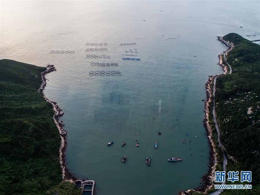8月19日,空中俯瞰南麂島(無人機(jī)拍攝)。進(jìn)入8月,浙江省溫州市平陽縣南麂鎮(zhèn)海域上大片的大黃魚、貽貝等特色海產(chǎn)品養(yǎng)殖區(qū)域迎來豐收季節(jié),養(yǎng)殖戶們駕駛漁船在養(yǎng)殖區(qū)海域進(jìn)行打撈收獲,在碧海藍(lán)天下構(gòu)成了一幅“海上牧場”的美麗豐收景象。近年來,南麂鎮(zhèn)政府引導(dǎo)漁民養(yǎng)殖戶充分發(fā)揮“靠海吃?!钡馁Y源優(yōu)勢,大力發(fā)展海洋養(yǎng)殖經(jīng)濟(jì)和海島旅游經(jīng)濟(jì),實現(xiàn)了南麂由“生態(tài)美”向“產(chǎn)業(yè)美”,“產(chǎn)業(yè)美”向“經(jīng)濟(jì)美”的轉(zhuǎn)變。同時該鎮(zhèn)堅持以大黃魚、貽貝等為特色產(chǎn)業(yè)支撐,精準(zhǔn)發(fā)展高效海洋養(yǎng)殖業(yè),重點培養(yǎng)一批新型職業(yè)漁民,依靠專業(yè)技術(shù)支持,實現(xiàn)深海仿生養(yǎng)殖,讓好生態(tài)造就好品質(zhì),重點打造南麂養(yǎng)殖品牌,組建營銷網(wǎng)絡(luò),拓展特色海產(chǎn)品市場。新華社記者 徐昱攝