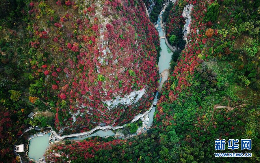 這是西狹頌景區(qū)秋景(10月16日無人機(jī)拍攝)。 新華社記者 陳斌 攝