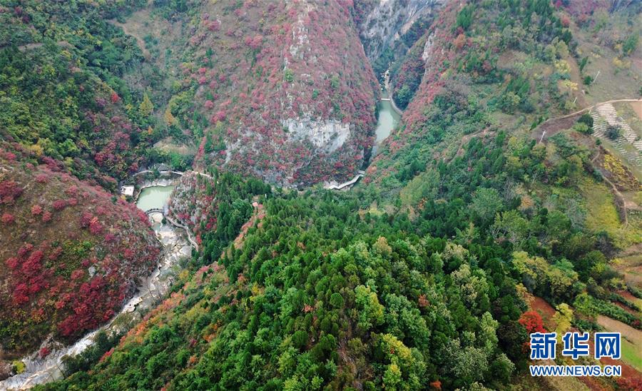 這是西狹頌景區(qū)秋景(10月16日無(wú)人機(jī)拍攝)。 新華社記者 陳斌 攝