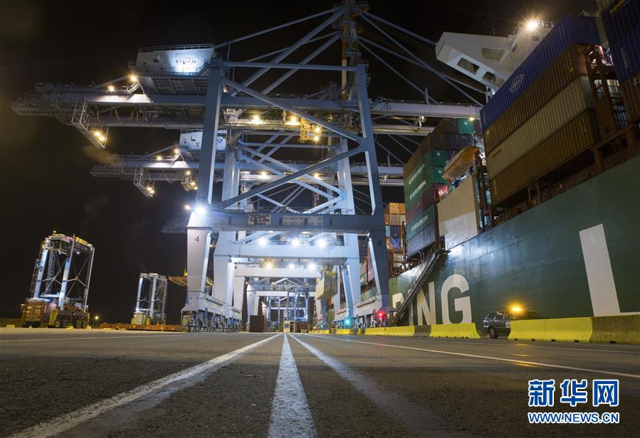 這是10月15日晚在比利時澤布呂赫港拍攝的集裝箱碼頭。新華社記者 葉平凡 攝