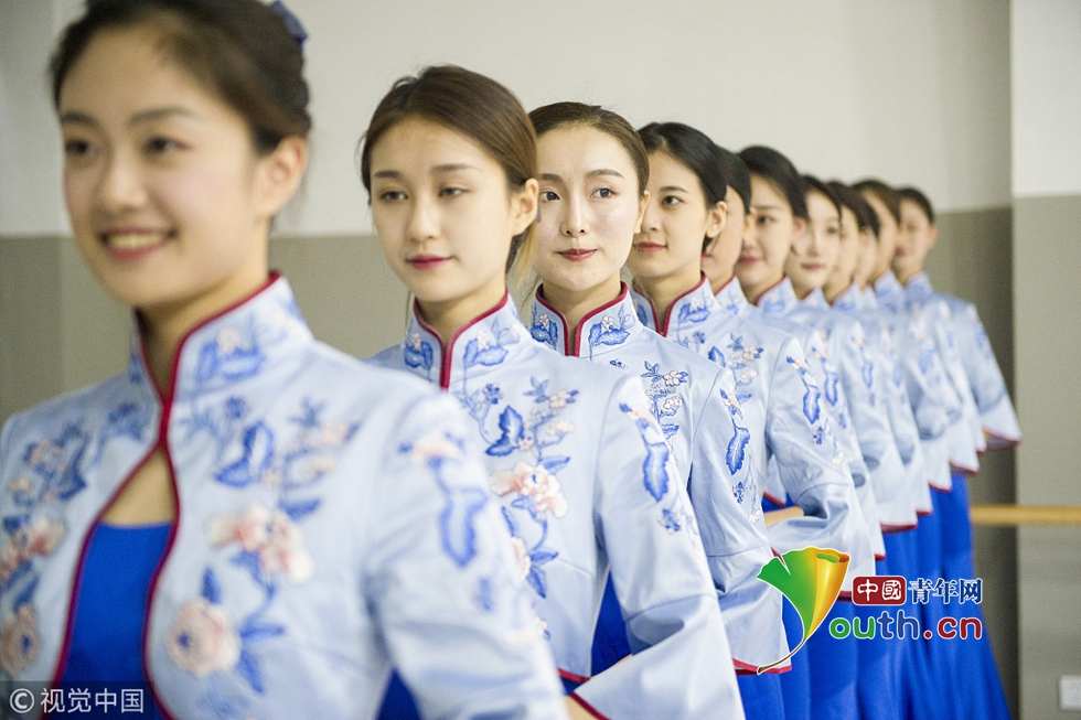 2018年10月15日,杭州,第五屆世界互聯(lián)網(wǎng)大會召開在即,來自浙江傳媒學院的禮儀志愿者們正在進行緊張有序的集中訓練。圖片作者:浙江日報 馮賀/視覺中國
