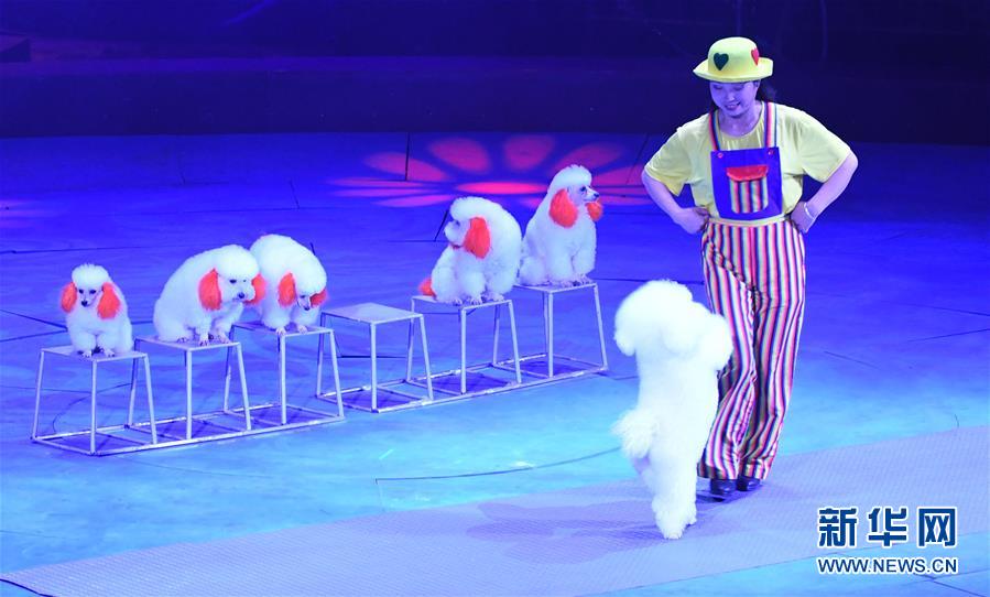 10月16日,馬戲團演員在濮陽國際雜技藝術(shù)節(jié)上表演馬戲《小狗當家》。