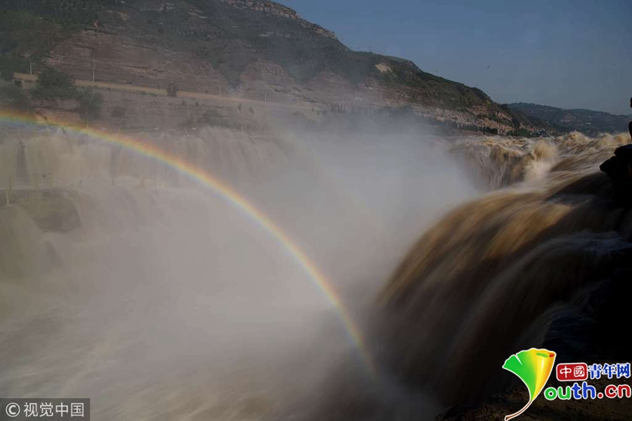 5月31日,山西臨汾奔騰咆哮的黃河壺口瀑布吸引游客。近日,受上游地區(qū)降雨量增多影響,黃河干流晉陜峽谷水量大增,每秒流量達(dá)到1100立方,是常年同期的三倍,壺口瀑布出現(xiàn)五月份罕見的瀑布群景觀,吸引了眾多游客。