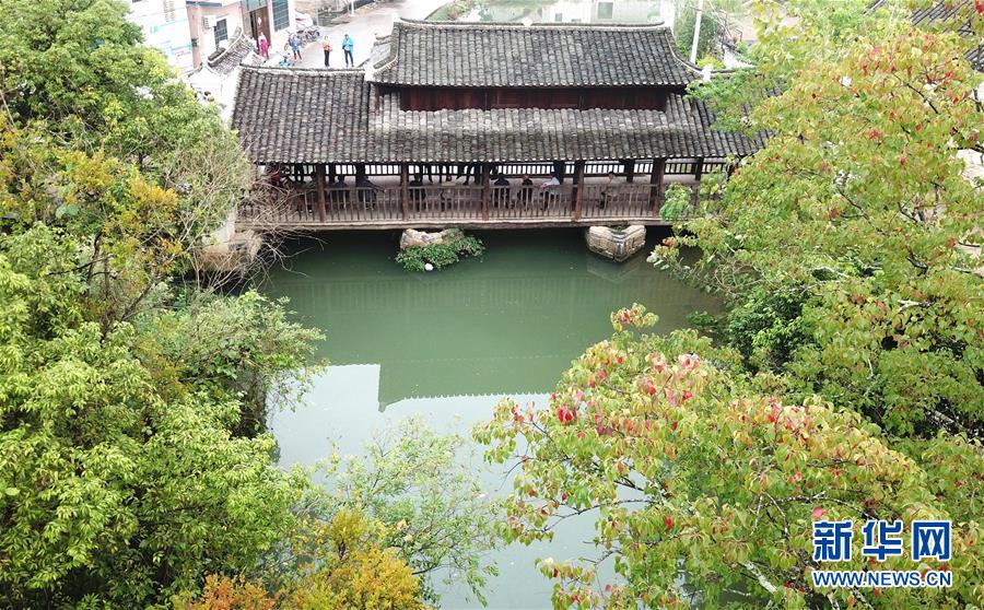 有著數百年歷史的廣西富川瑤族自治縣朝東鎮(zhèn)東水村風雨橋(10月19日無人機拍攝)?!⌒氯A社記者 周華 攝