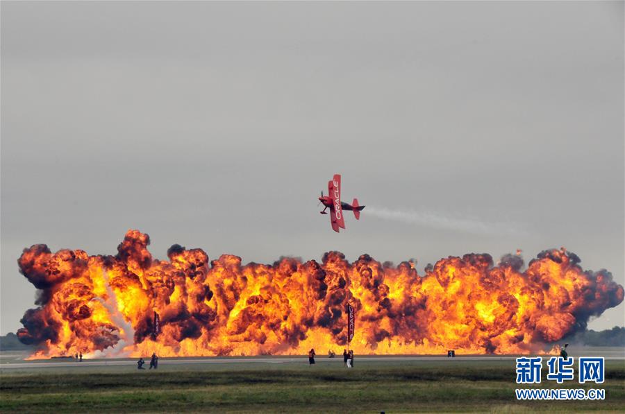 10月20日,在美國(guó)休斯敦,特技飛行員肖恩·塔克駕駛飛機(jī)進(jìn)行飛行表演。 新華社記者劉立偉攝