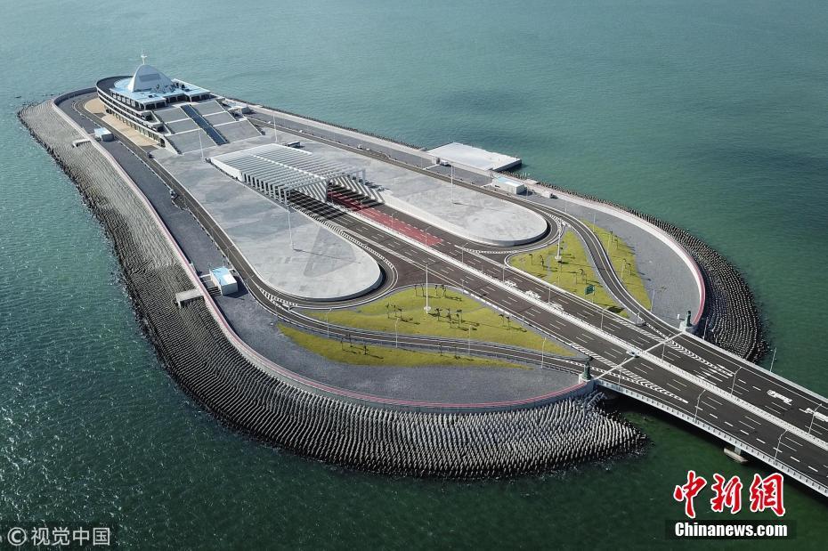 10月19日拍攝的港珠澳大橋東人工島。 港珠澳大橋開通在即。 新華社記者 李鋼 攝