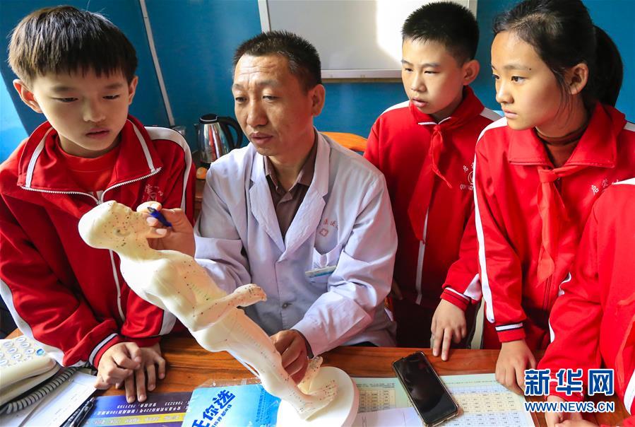 10月22日,安平縣中醫(yī)院醫(yī)生在教小學(xué)生認識人體穴位。 當日是世界傳統(tǒng)醫(yī)藥日,河北省安平縣啟蒙小學(xué)組織學(xué)生走進安平縣中醫(yī)院,通過參觀中藥房、認識常見中藥、感受中藥加工等方式,向小學(xué)生普及中醫(yī)藥知識,弘揚傳統(tǒng)中醫(yī)藥文化。 新華社記者李曉果攝