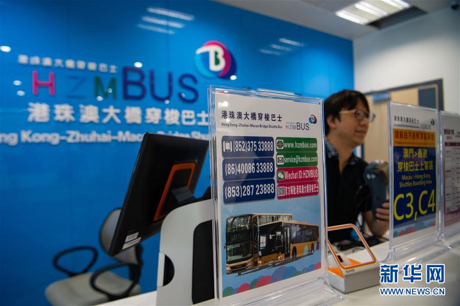 位于港珠澳大橋澳門邊檢大樓的穿梭巴士售票處(10月19日攝)。 港珠澳大橋?qū)⒂诒驹?4日通車運(yùn)營,成為連接香港、澳門的新通道。記者19日驅(qū)車前往澳門口岸實(shí)地采訪,了解口岸內(nèi)部設(shè)置和準(zhǔn)備工作情況。 新華社記者 張金加 攝