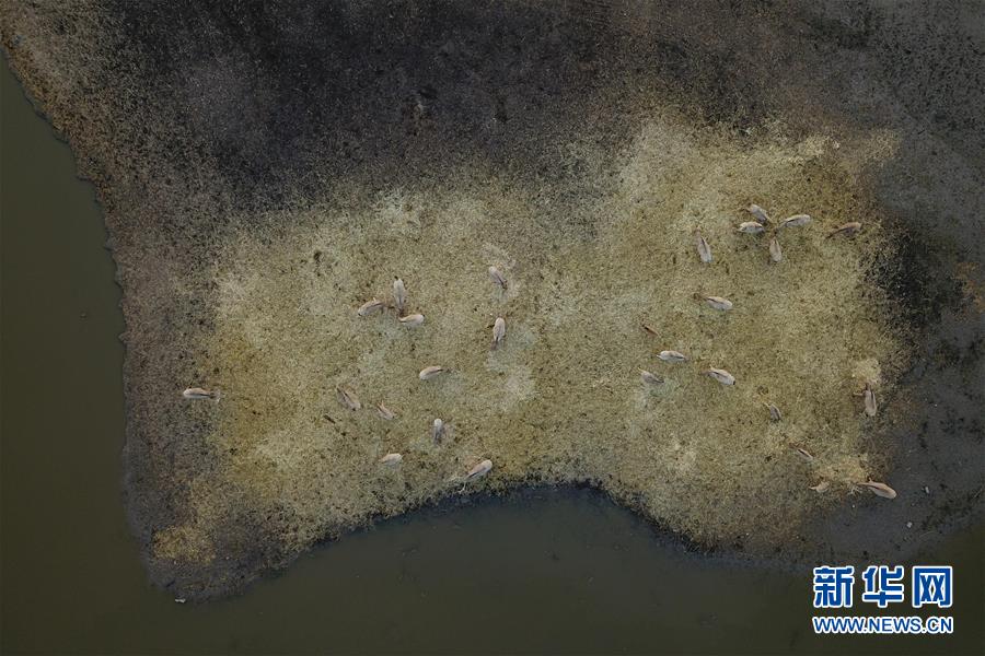 10月24日,生活在杭州灣國家濕地公園水禽棲息區(qū)的麋鹿在覓食(無人機拍攝)。 時值深秋,位于浙江寧波的杭州灣國家濕地公園在落日余暉下呈現(xiàn)出一幅美麗的畫卷。 新華社記者 黃宗治 攝