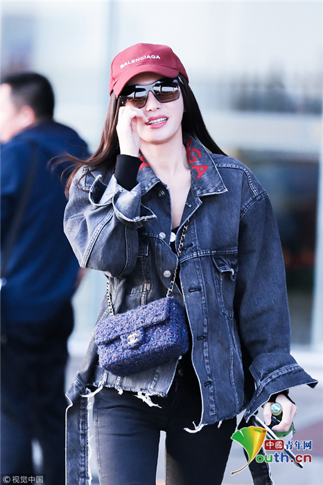 2018年10月24日,北京,“富察皇后”秦嵐現(xiàn)身機(jī)場(chǎng)。她頭戴小紅帽,身穿黑色緊身褲顯美腿筆直修長(zhǎng),上身穿著牛仔外套青春逼人,邊走邊甜笑玩“撩發(fā)殺”,靚麗吸睛。