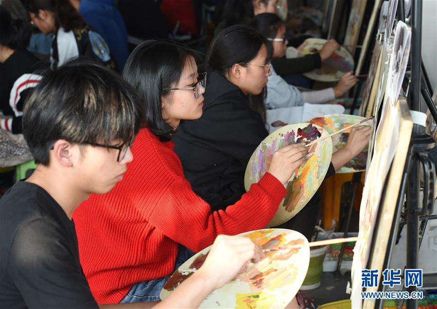 10月24日,考生在南京青藍(lán)畫(huà)室教學(xué)基地考點(diǎn)參加色彩科目模擬考試。