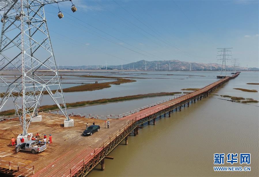 當(dāng)日,福建省重點(diǎn)工程——莆田埭頭風(fēng)電220千伏送出工程第一根導(dǎo)線順利牽引出線。為避免在海上構(gòu)筑圍堰,工程采用全國(guó)首創(chuàng)的全路徑鋼棧橋橫跨海灣方式,減少了土地占用,有助于保護(hù)生態(tài)環(huán)境,為跨海電力施工提供了實(shí)踐經(jīng)驗(yàn)。