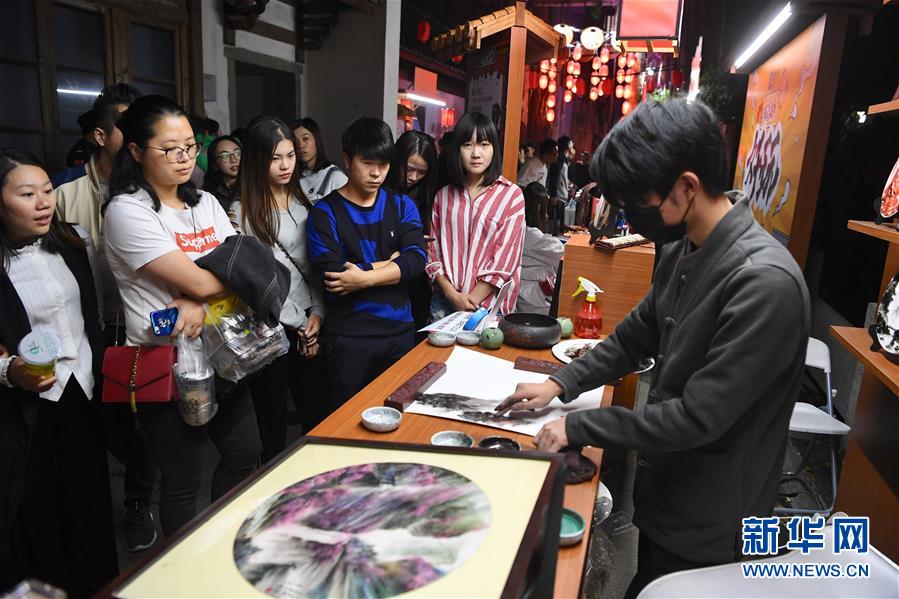 10月29日,在首屆天下碼商大會碼商集市上,觀眾觀看手指作畫。 10月28日至30日,由福州市政府聯(lián)合支付寶主辦的首屆天下碼商大會在福建福州舉行。 新華社記者 姜克紅 攝