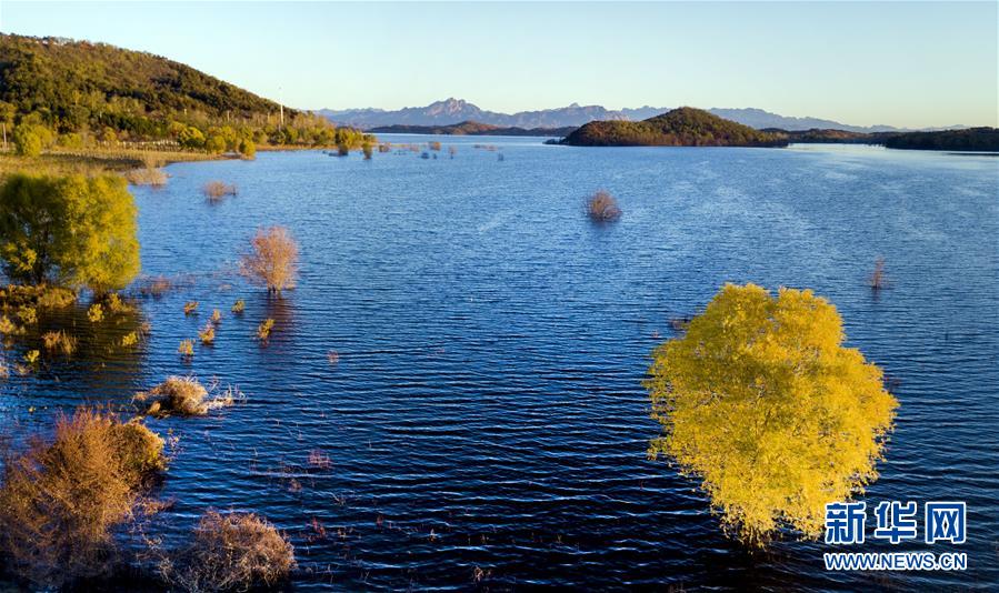 這是北京密云水庫(kù)秋色(10月30日無(wú)人機(jī)拍攝)。