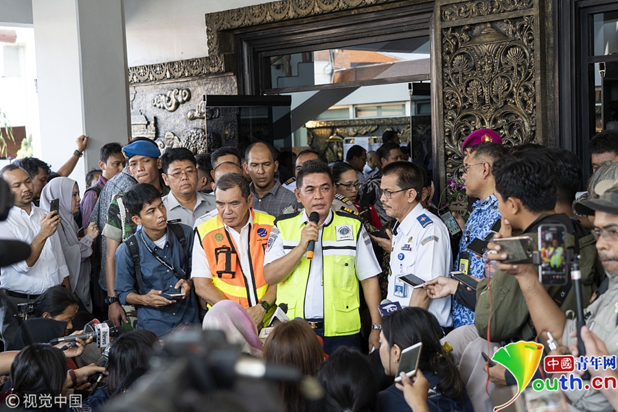印尼哈達(dá)國際機(jī)場,機(jī)場管理局負(fù)責(zé)人Bagus Sunjoyo就獅航JT610墜機(jī)事件召開記者會(huì)。