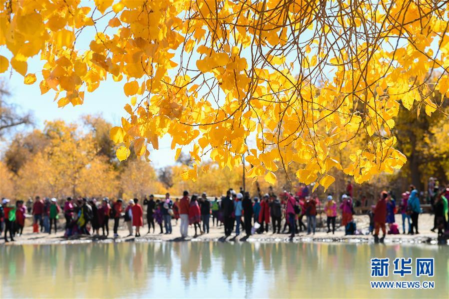 10月10日,在內(nèi)蒙古自治區(qū)額濟(jì)納旗,游客在觀賞胡楊林。 金秋時節(jié),內(nèi)蒙古自治區(qū)額濟(jì)納旗胡楊林如同披上金裝,成為大漠中的一抹亮色,吸引眾多中外游客前來觀賞游玩。 新華社記者劉磊攝