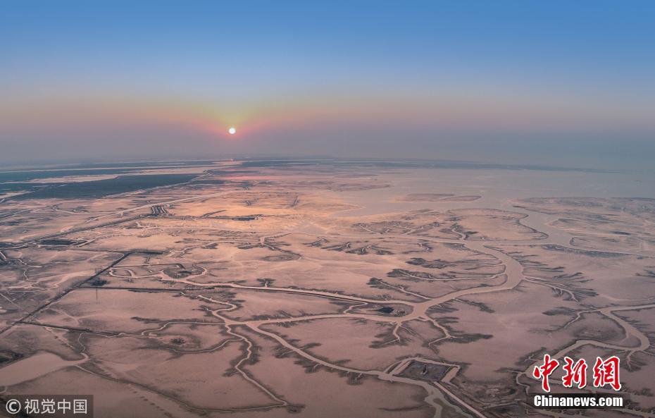 10月3日,山東東營(yíng),航拍黃河三角洲國(guó)家級(jí)自然保護(hù)區(qū)內(nèi)壯觀的河流脈絡(luò)。圖片來(lái)源:視覺(jué)中國(guó)