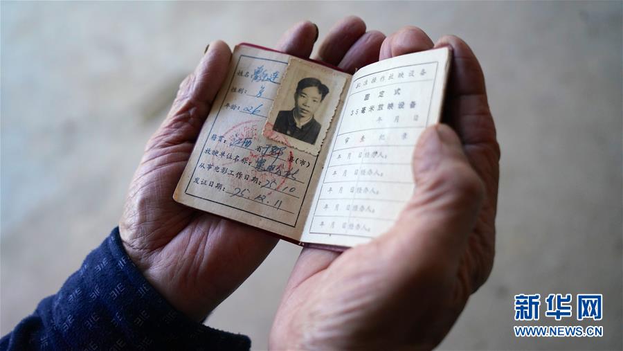 10月30日,曾紀(jì)連向記者展示1975年發(fā)放的電影放映員工作證。 新華社記者 胡晨歡攝