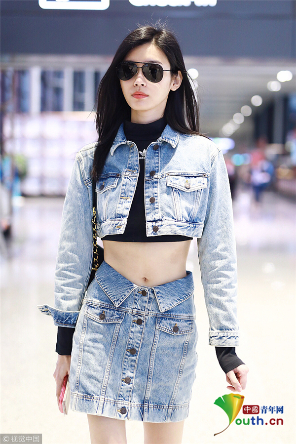 奚夢(mèng)瑤一身帥氣牛仔裝 露細(xì)腰長(zhǎng)腿顯好身材
