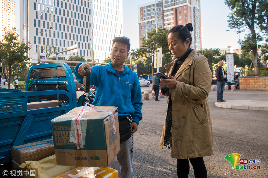 攝影師實拍90后快遞員熊忠桃的一天工作。作為一名快遞員,他25歲就買了房,9月份收入3萬多。圖片作者:銳圖