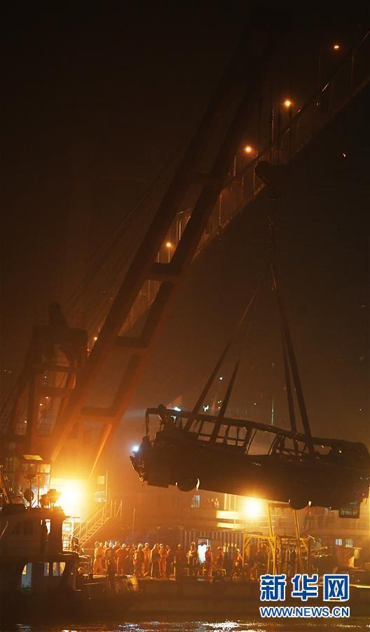 10月31日23時(shí)30分左右,記者在重慶萬(wàn)州江面的打撈現(xiàn)場(chǎng)看到,隨著浮吊船的吊索緩緩提升,墜江的公交車被打撈出水面。 10月28日10時(shí)8分,重慶市萬(wàn)州區(qū)一輛公交車行駛至長(zhǎng)江二橋時(shí),與一輛小轎車相撞后墜江。經(jīng)公安機(jī)關(guān)初步核實(shí),失聯(lián)人員15人。