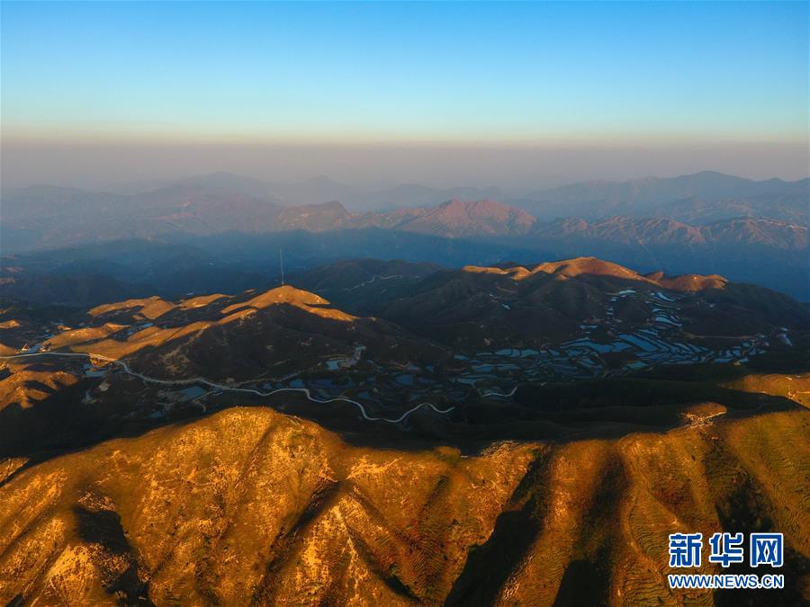 夕陽下的摩天嶺草場(11月2日無人機拍攝)。金秋時節(jié),廣西融水苗族自治縣桿洞鄉(xiāng)堯告村的摩天嶺草場天高云淡,景色迷人。新華社記者周華攝